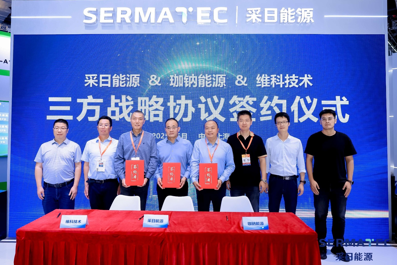 近日,維科技術股份有限公司與上海采日能源科技有限公司、深圳珈鈉能源科技有限公司在國家會展中心(上海)SNEC展上簽署《三方戰略合作協議》,宣布在鈉離子電池儲能技術研發、產品推廣及產業鏈協同等領域達成深度合作,共同開啟鈉電儲能產業高質量發展新篇章。